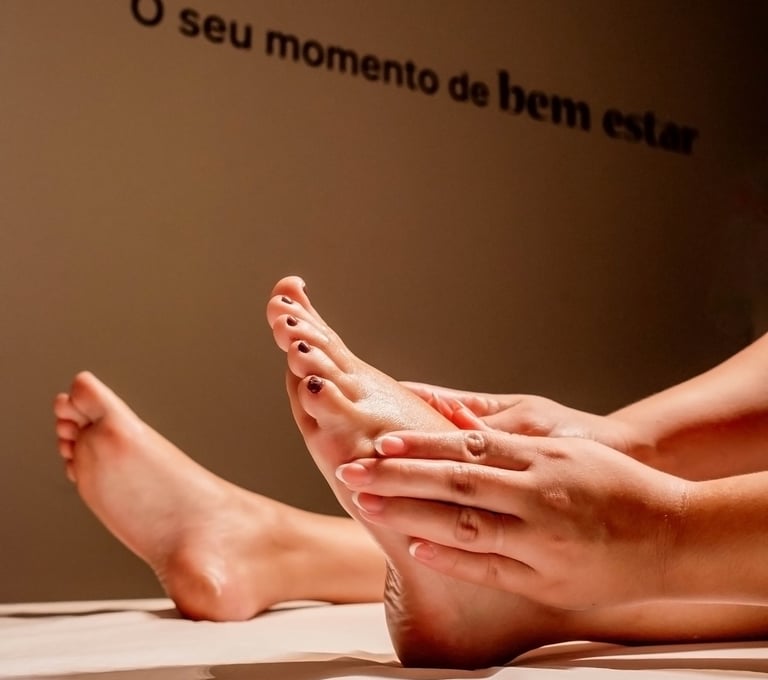 Massagem nos pés em pontos reflexo para aliviar ansiedade, estresse, insônia e tensões no corpo.